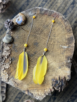 KOLCZYKI Z PIÓRAMI ∻ DŁUGIE ŻÓŁTE ∻