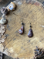 NATURALNE KOLCZYKI Z OWOCNI JACARANDY ∻ KAMIEŃ KSIĘŻYCOWY ∻